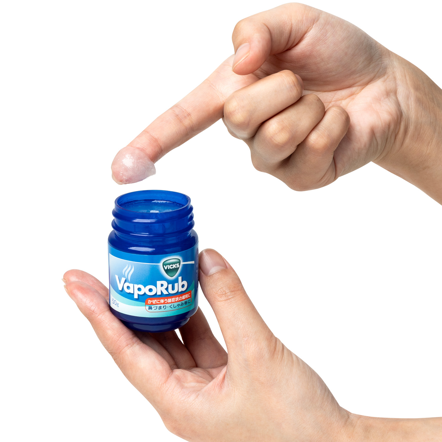 ヴイックス ヴェポラッブは、胸・のど・背中に ぬることで、鼻づまり、くしゃみなど、かぜに 伴う諸症状を緩和します。