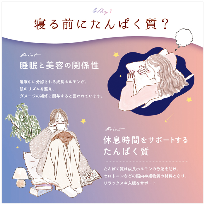 おやすみ前のリラックスと美容習慣を両立するたんぱく質(プロテイン)。